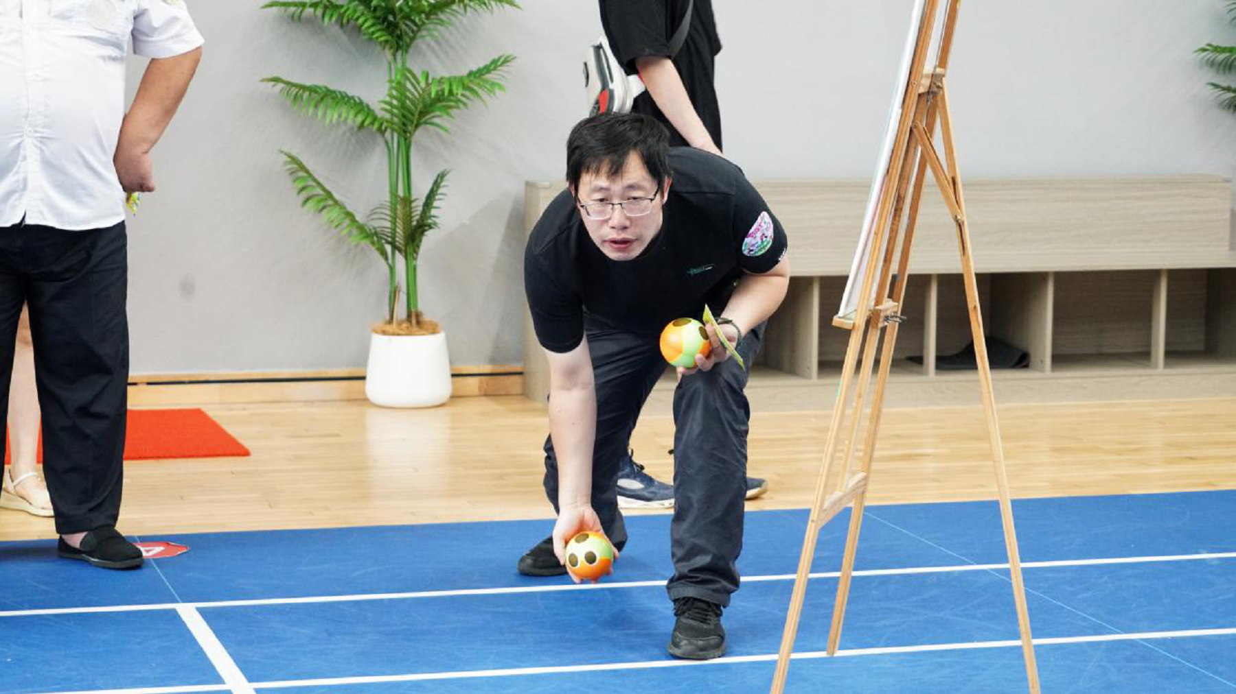 “進(jìn)擊吧西瓜”環(huán)節(jié)中,大家化身“西瓜勇士”,奮力投擲,隨著手中“西瓜球”破空而出,擊倒地面上瓶子,場(chǎng)上歡呼聲彌漫著收獲勝利的喜悅。