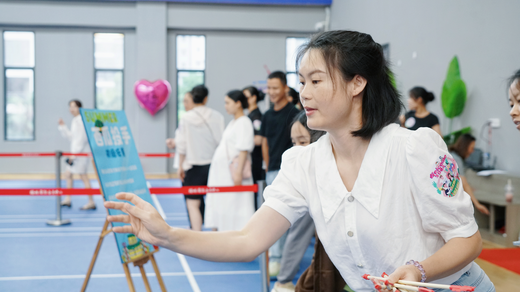 “西瓜投手”考驗(yàn)著大家的精準(zhǔn)度與協(xié)調(diào)性,將箭矢投入目標(biāo)框的瞬間,歡呼聲此起彼伏。