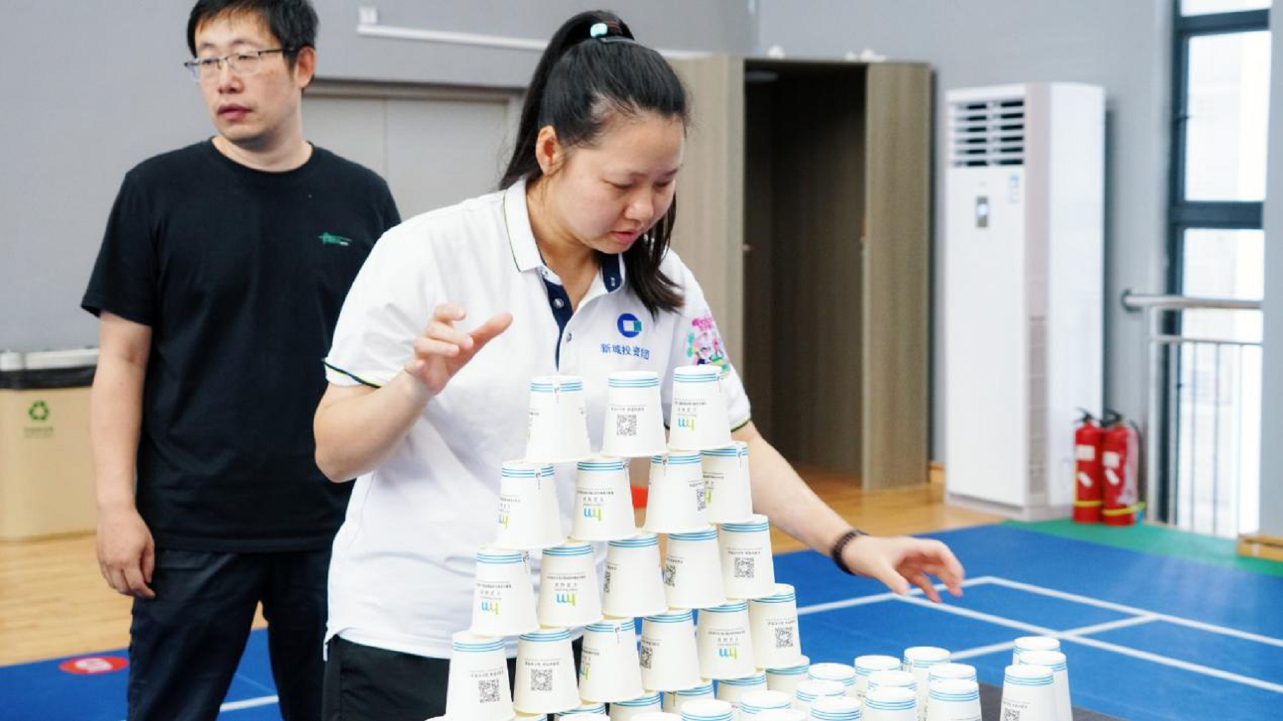 “筑夢(mèng)高塔”環(huán)節(jié)里,壽星們拆搭紙杯搭建高塔,每放置一個(gè)紙杯都全神貫注,一座承載著歡樂(lè)與期待的紙杯高塔緩緩成型,現(xiàn)場(chǎng)氣氛緊張又充滿樂(lè)趣。