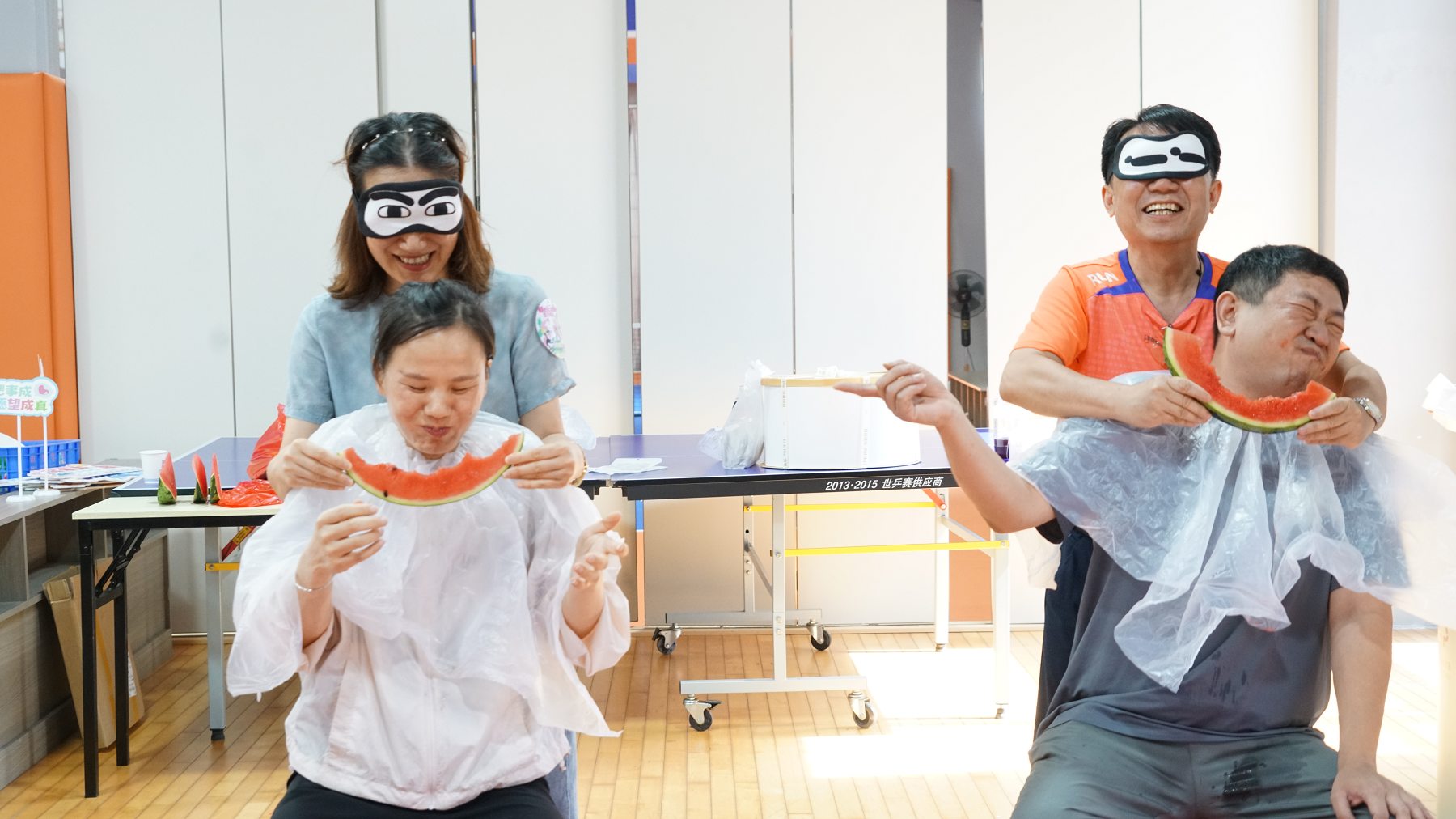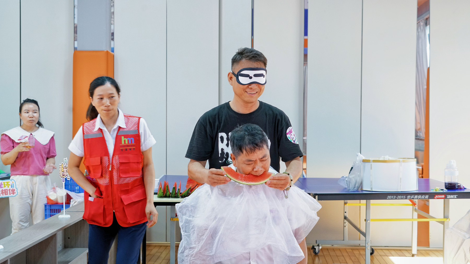 而“蒙眼吃西瓜”更是將歡樂(lè)氛圍拉滿,蒙著眼的壽星們摸索著尋找西瓜,狼吞虎咽的樣子既可愛(ài)又搞笑。