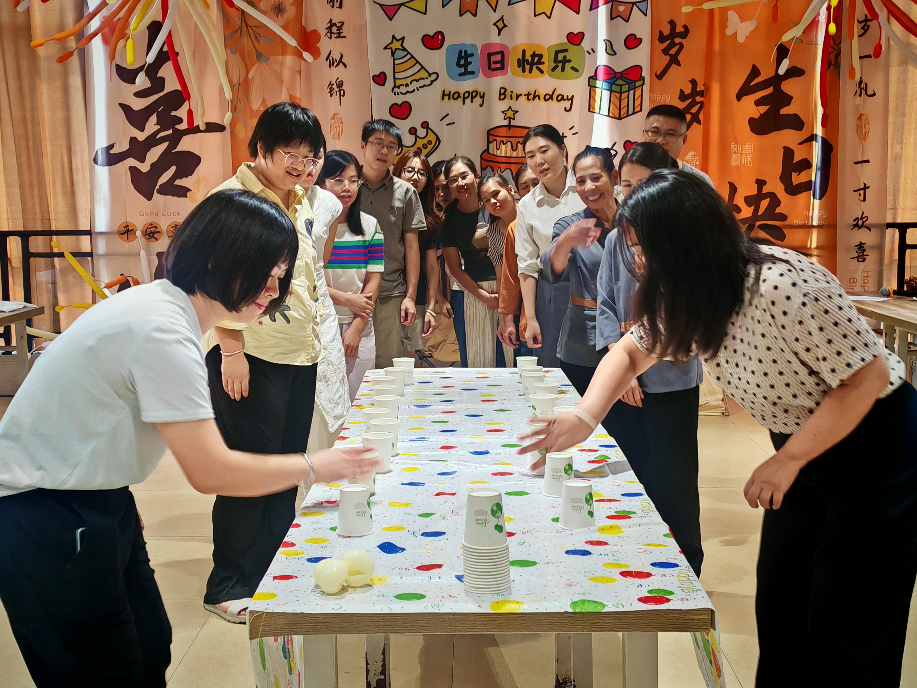 生日會(huì)最熱鬧的環(huán)節(jié)當(dāng)屬游戲互動(dòng)。大家分組對(duì)抗,既比拼智慧和反應(yīng),也考驗(yàn)團(tuán)隊(duì)的協(xié)作與默契。