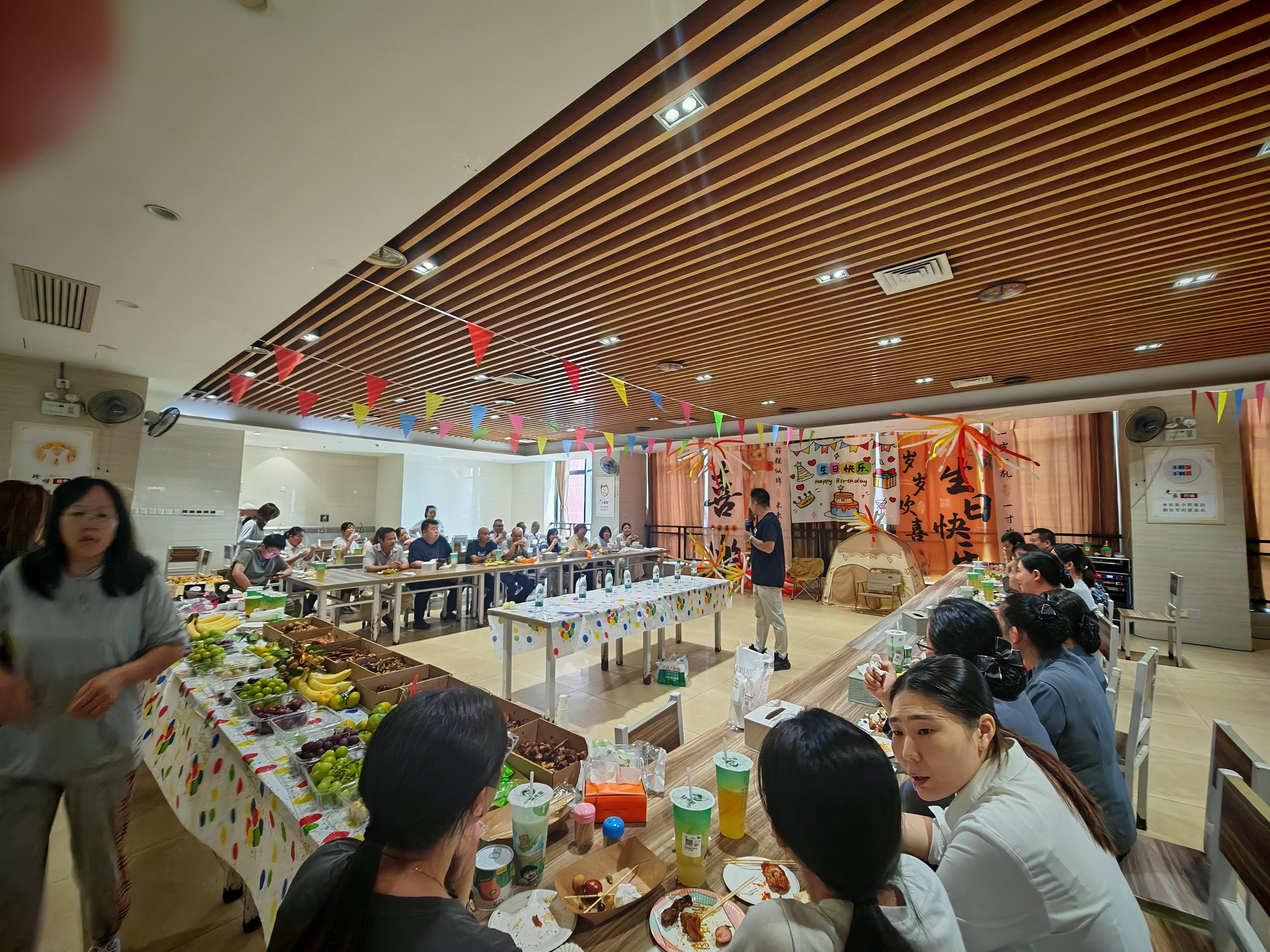 為了給壽星們留下難忘的回憶,建設(shè)分會(huì)早早開(kāi)始準(zhǔn)備。從蛋糕、飲品、小吃到小禮品,每一處都體現(xiàn)著貼心;會(huì)場(chǎng)布置則洋溢著秋日氣息,簽到區(qū)、下午茶區(qū)、游戲區(qū)一應(yīng)俱全。彩帶與氣球點(diǎn)綴下的現(xiàn)場(chǎng),讓大家一踏入就感受到濃濃的節(jié)日氛圍。