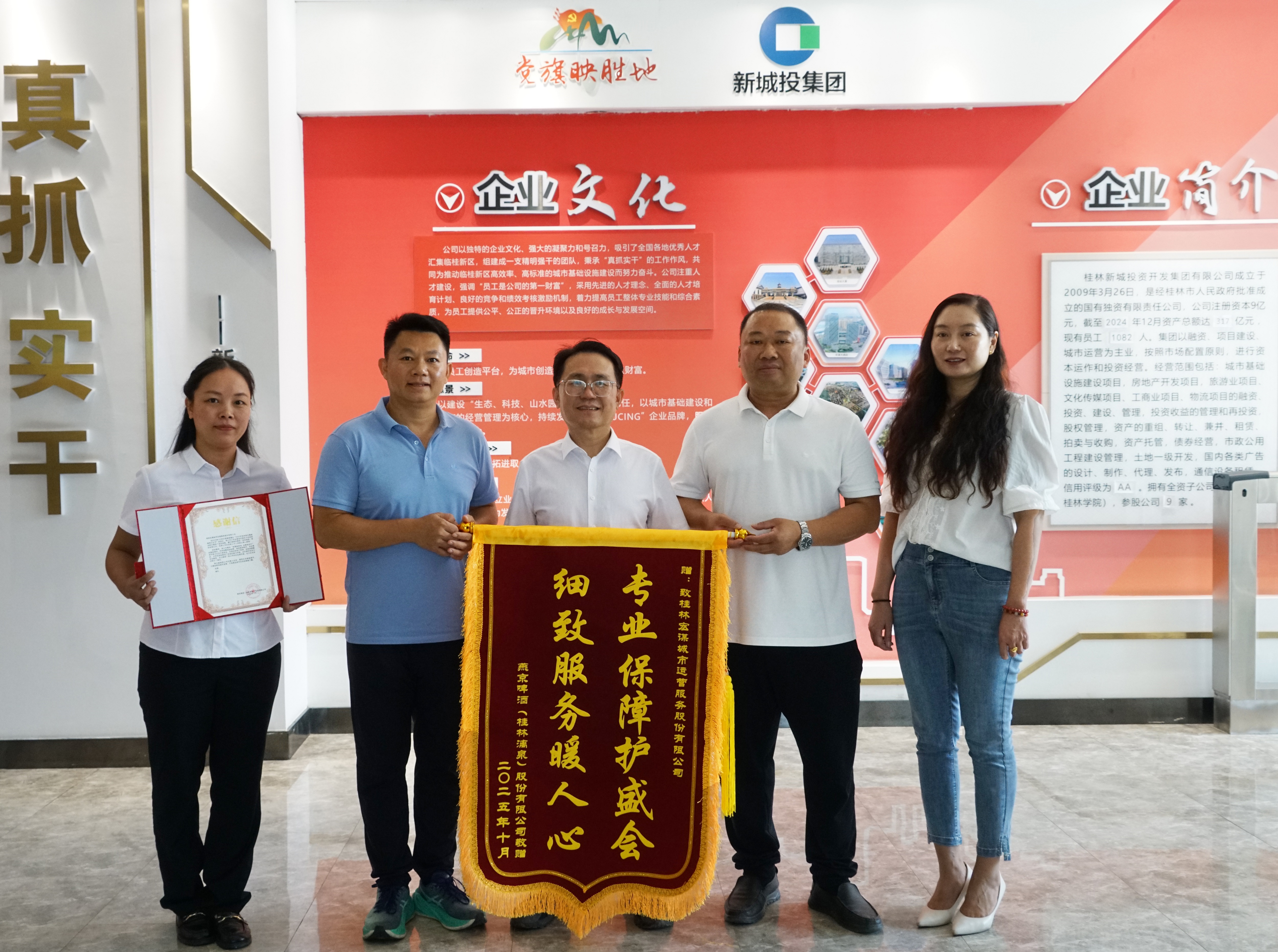 2025年10月16日,燕京啤酒(桂林漓泉)股份有限公司將“場(chǎng)地保障奠基石 同心共筑城市興”、“專業(yè)保障護(hù)盛會(huì) 細(xì)致服務(wù)暖人心”兩面錦旗及感謝信送到新城投集團(tuán),對(duì)新城投集團(tuán)及其子公司宏謀城運(yùn)公司在2025年9月26 - 10月8日臨桂區(qū)七彩煙花秀暨燕京漓泉啤酒文化節(jié)期間,提供堅(jiān)實(shí)后勤保障,助力活動(dòng)圓滿落幕表示感謝。
